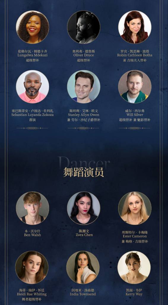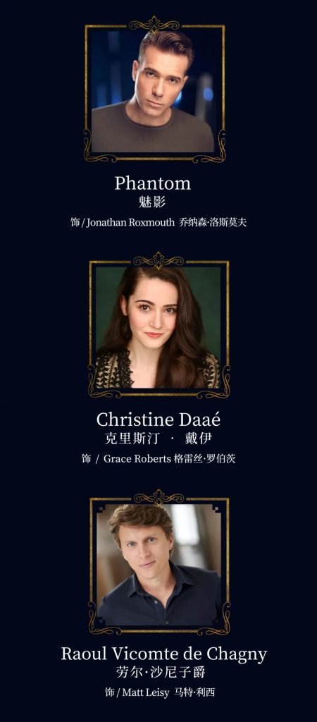 The original English-language musical “The Phantom of the Opera” performed at the Beijing Tianqiao Performing Arts Center will be presented by the original team to ensure that the audience experiences the purest performance. The main cast includes: